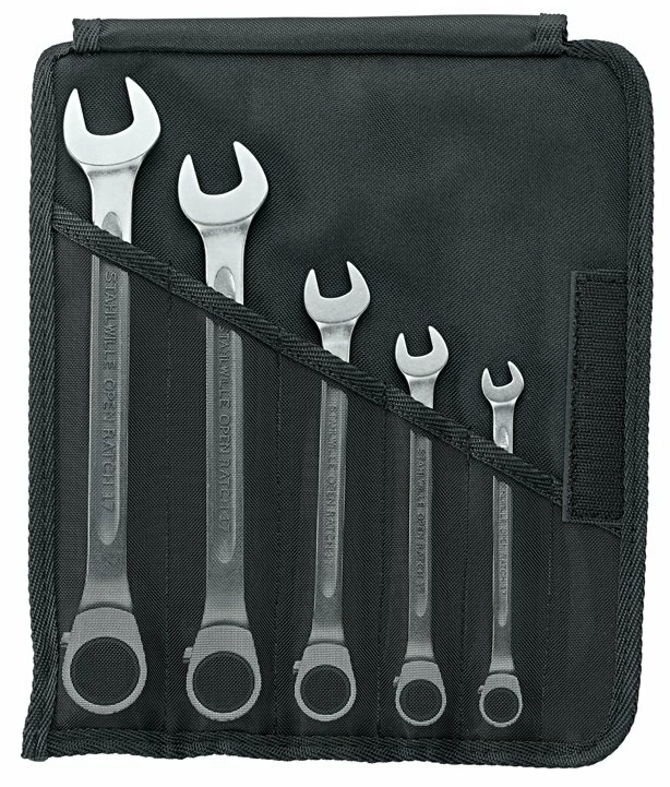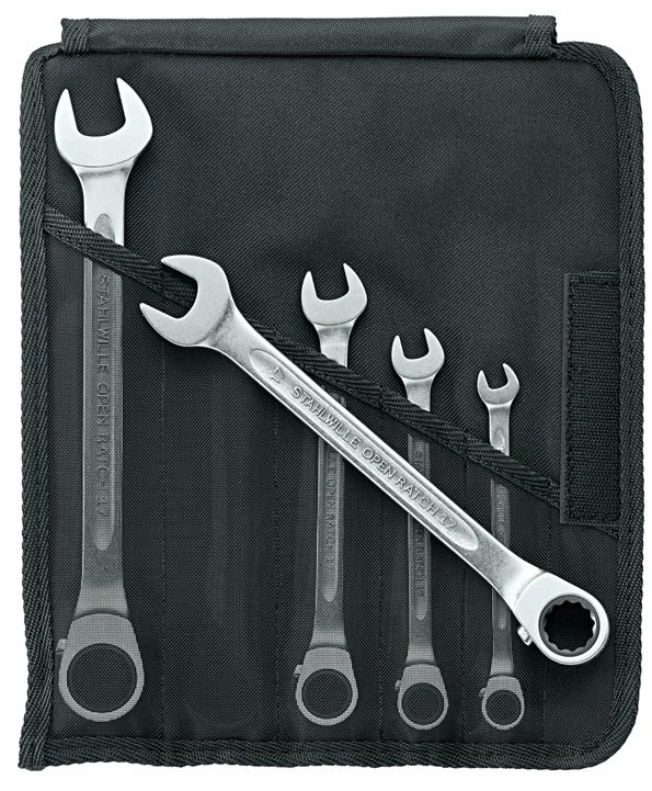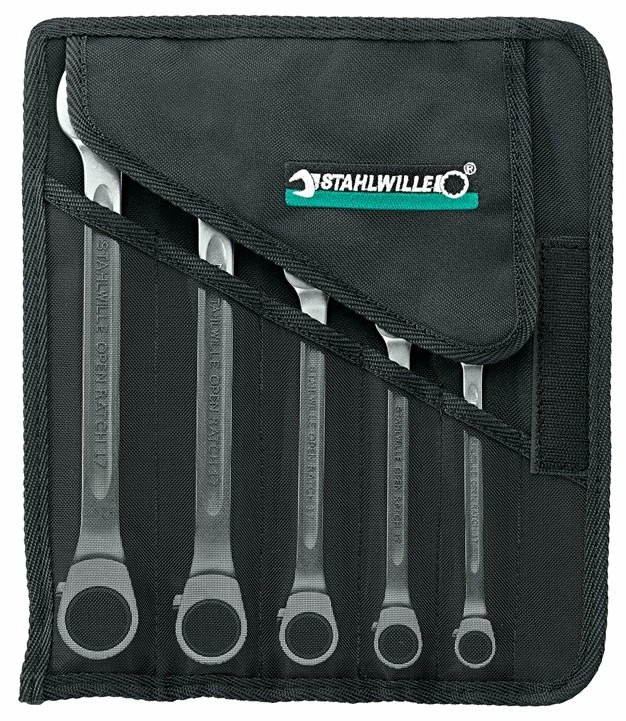 - Stahlwille 17/5 Combination ratcheting Spanner OPEN-RATCH Set, in roll-up wallet